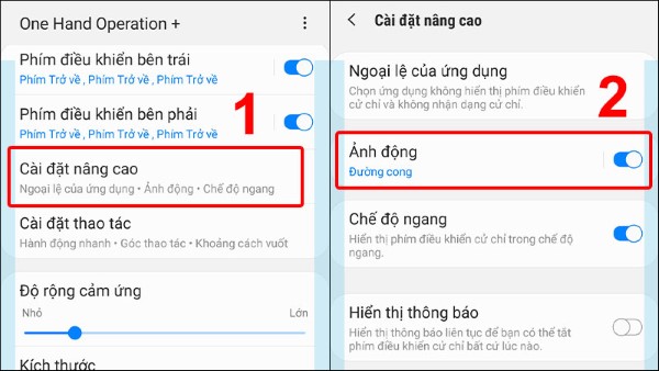 Bước 1: Nhấn chọn vào Cài đặt nâng cao > Chọn mục Ảnh động.