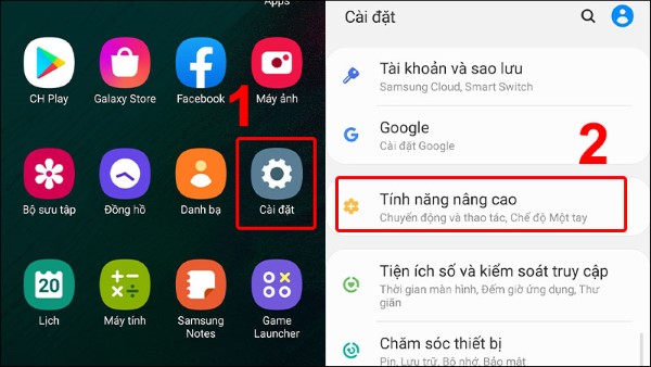 Bước 1: Truy cập vào Cài đặt > Chọn vào mục Tính năng nâng cao.