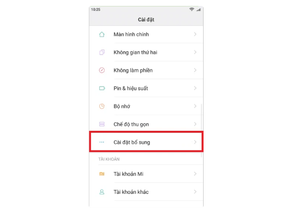 Bước 2: Tìm đến mục menu cài đặt bổ sung.