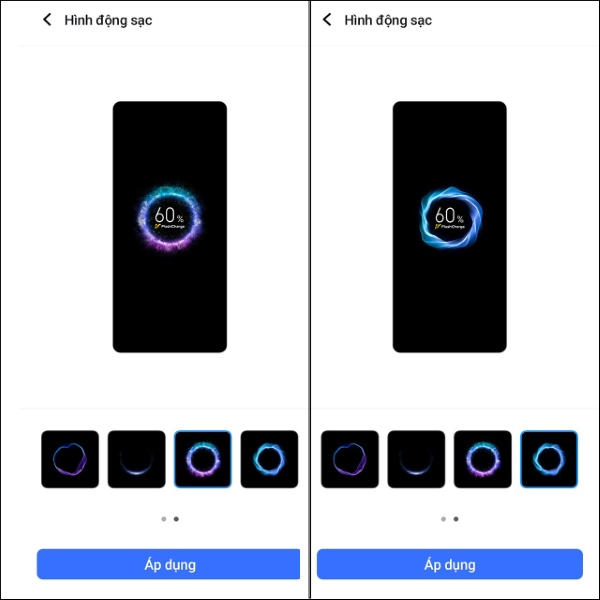 Bước 2: Tại đây, bạn có thể chọn hiệu ứng sạc pin mà bạn muốn sử dụng. Khi đã chọn xong, nhấn vào “Áp dụng” để hoàn tất quá trình.