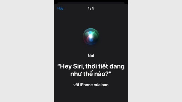 Bước 5: Quay lại mục “Nói với Siri”, chọn Thiết lập “Hey Siri”, sau đó nói thử vài câu lệnh mẫu để Siri nhận diện giọng bạn.