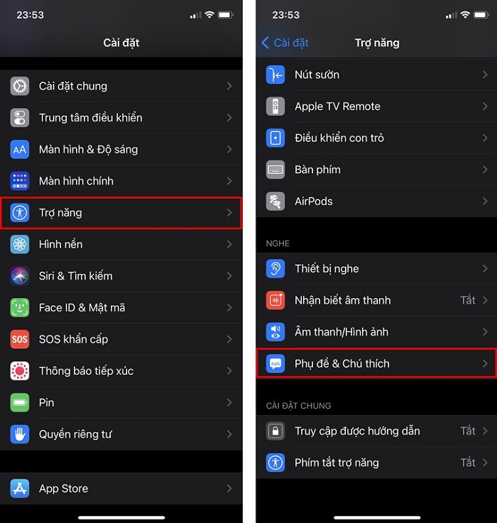 Bước 1: Vào “Cài đặt” -> chọn “Trợ năng” -> chọn “Phụ đề & Chú thích”.