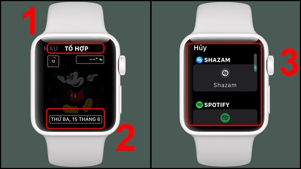 Giữ mặt đồng hồ mà người dùng muốn thêm ứng dụng >> Chọn Sửa >> Lướt từ phải qua trái đến phần TỔ HỢP >> Chọn vào từng ô người dùng muốn thêm ứng dụng >> Tìm và nhấn chọn ứng dụng yêu thích.