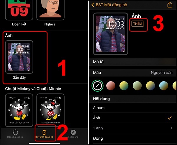Bước 3: Người dùng nhấn chọn giao diện đồng hồ từ thư viện.