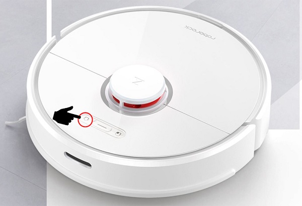 Bước 1: Người dùng hãy nhấn và giữ nút nguồn ở trên thân robot hút bụi Xiaomi cho đến khi nghe thấy tiếng báo Turning On