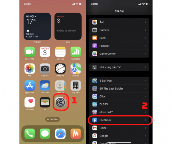 Ví dụ, chọn ứng dụng Facebook.