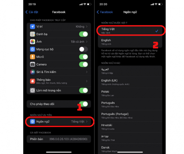 Bước 5: Tại đây, bạn chọn ngôn ngữ muốn thay đổi.