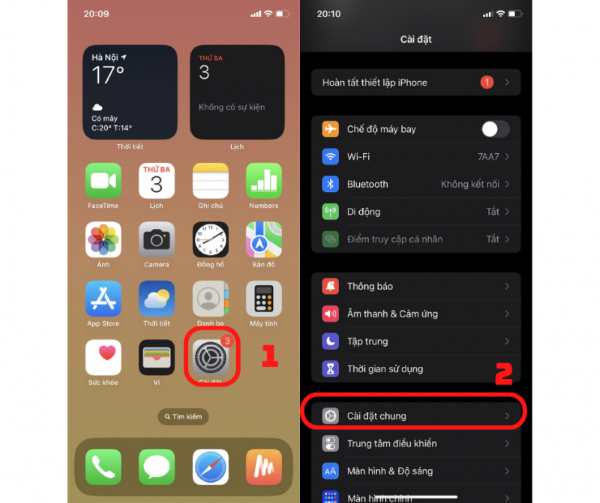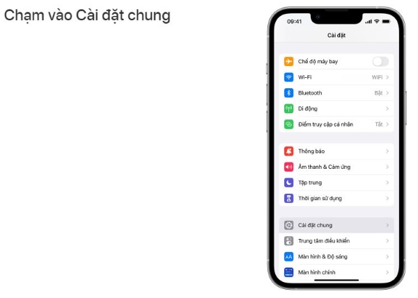 Bước 1: Trước tiên, bạn mở vào mục Cài đặt trên điện thoại iPhone của mình, rồi chọn tiếp vào phần Cài đặt chung.