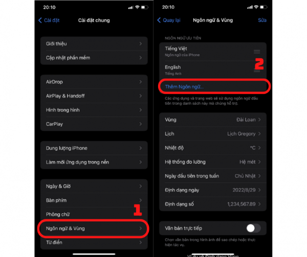 Chọn tiếp mục Ngôn ngữ & vùng