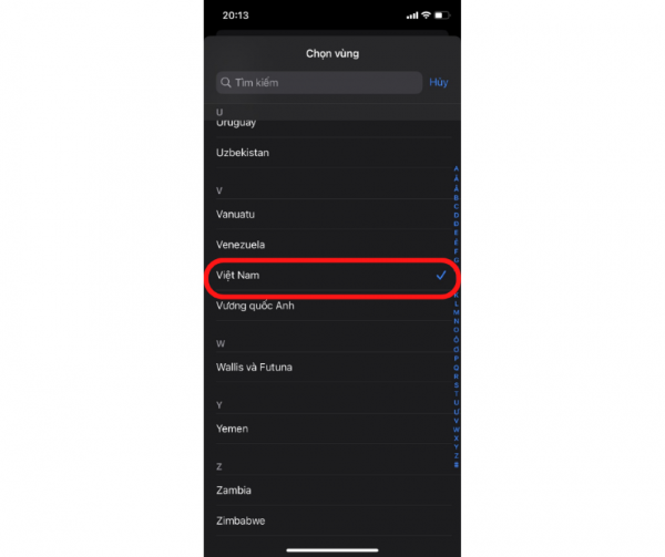 Bước 3: Cuối cùng, bạn kéo xuống dưới để tìm và chọn vào ngôn ngữ Việt Nam đang muốn thay đổi là được.