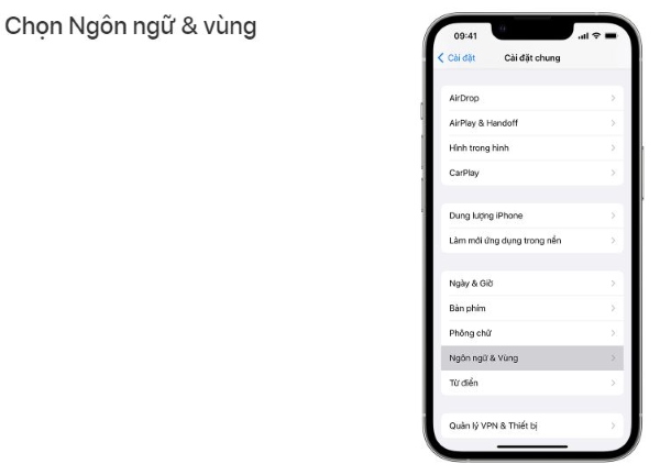 Bước 3: Chọn tiếp mục Ngôn ngữ & vùng.
