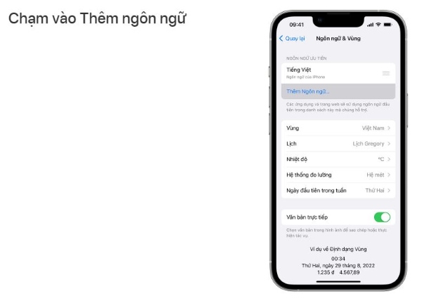 Bước 4: Chọn vào mục Thêm ngôn ngữ.