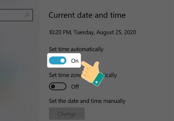Bước 5: Bật tính năng tự động đặt thời gian bằng cách gạt thanh công cụ Set time automatically sang phải là xong.