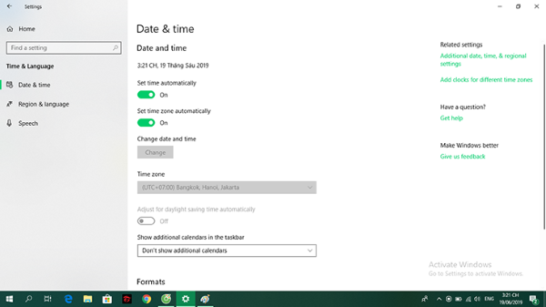 Bước 1: Mở hộp thoại Date & Time trên máy tính Windows 10.