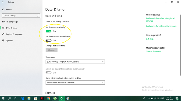 Kích hoạt tính năng tùy chỉnh giờ tự động trên Windows 10