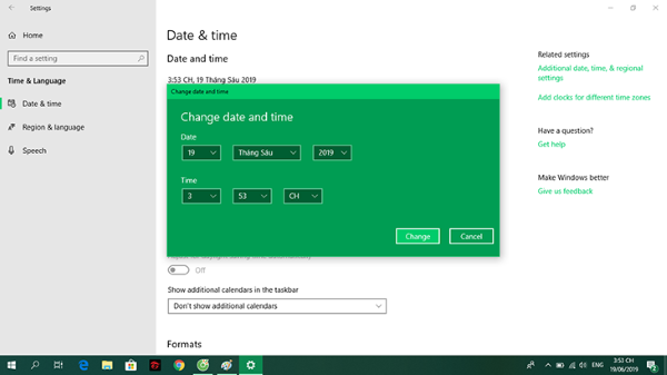 • Sau đó, nhấn chọn “Change” tại phía dưới Change Date & Time.