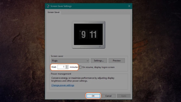 Bước 4: Tại mục Wait là khoảng thời gian mà màn hình chờ đồng hồ xuất hiện khi bạn không dùng máy. Bạn có thể thiết lập khoảng thời gian theo ý muốn rồi chọn “OK”.