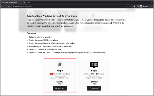 Bước 1: Tải và cài đặt màn hình chờ đồng hồ Fliqlo (https://fliqlo.com/screensaver/)về máy tính hoàn toàn miễn phí.