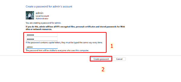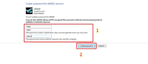 Bước 5: Nhập và xác nhận mật khẩu mới, thêm gợi ý > Bấm Create password để hoàn tất.