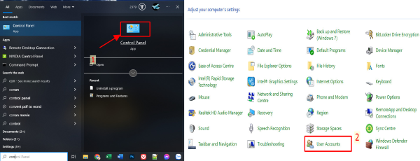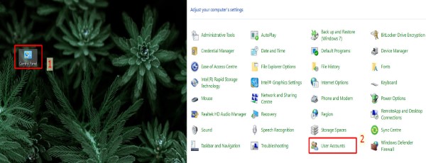 Cách 2: Cài đặt mật khẩu thông qua Control Panel