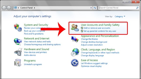 Bước 2: Chọn mục User Accounts and Family Safety.