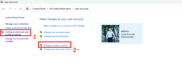 Bước 2: Tiếp tục chọn Manage another account.