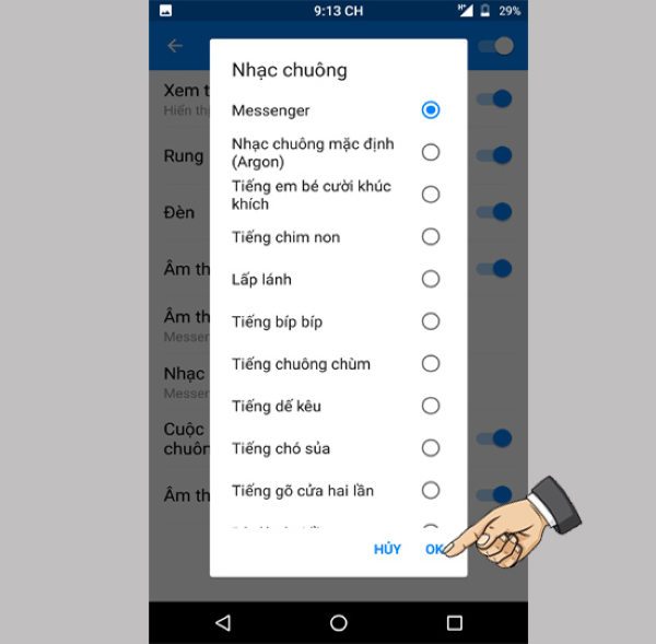 Bước 3: Chọn m thanh chuông báo.