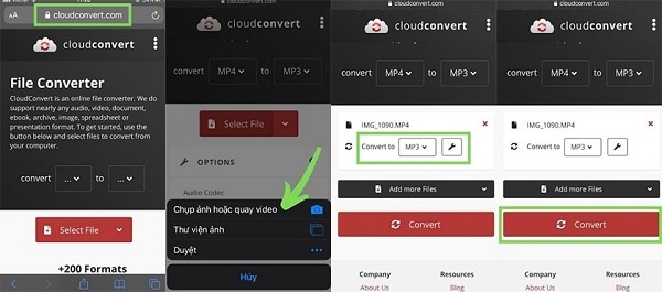 Cách dùng CloudConvert để chuyển nhạc TikTok sang nhạc MP3 để làm nhạc chuông Samsung thực hiện theo các bước sau: