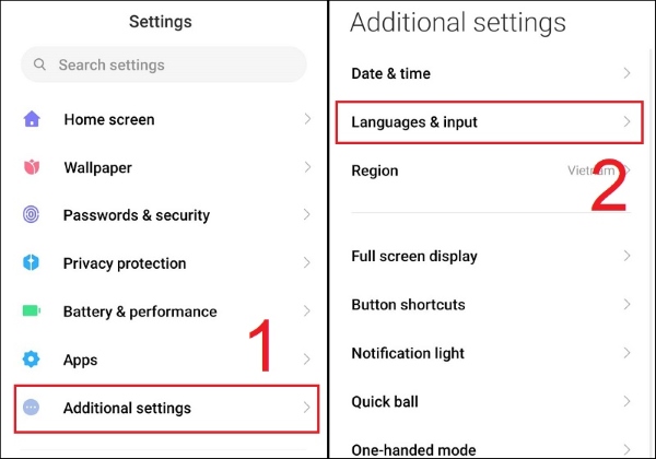 Bước 1: Người dùng mở vào phần Settings > chọn Additional Settings > chọn mục Languages & input.