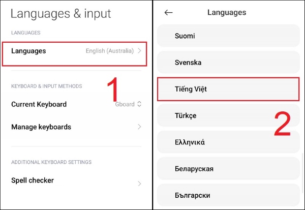 Bước 2: Chọn tiếp vào Languages > chọn Tiếng Việt.