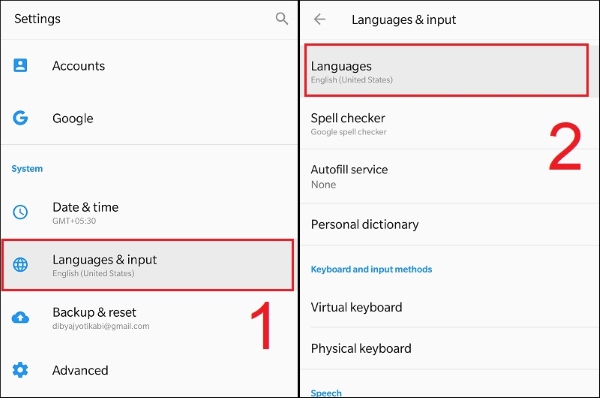 Bước 1: Bạn mở vào Setting (cài đặt) > chọn mục Languages & input > chọn Language (ngôn ngữ).