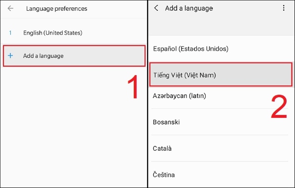 Bước 2: Chọn Add a language > chọn thêm ngôn ngữ tiếng Việt.