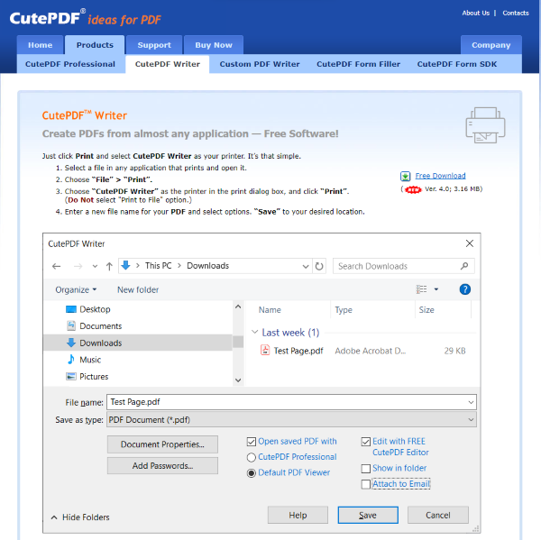 Cách cắt, chuyển file Excel sang ảnh bằng phần mềm CutePDF Writer offline