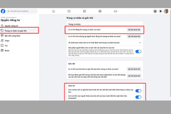 Bước 6: Bật tính năng Xem lại bài viết mà bạn được tag trước khi chúng hiện trên trang cá nhân của bạn trong phần “Xem lại”.
