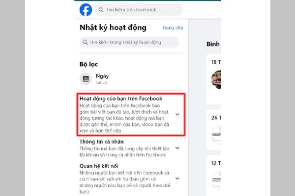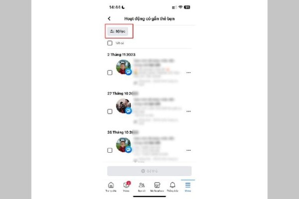 Bước 3: Tìm đến mục Hoạt động có gắn thẻ bạn.