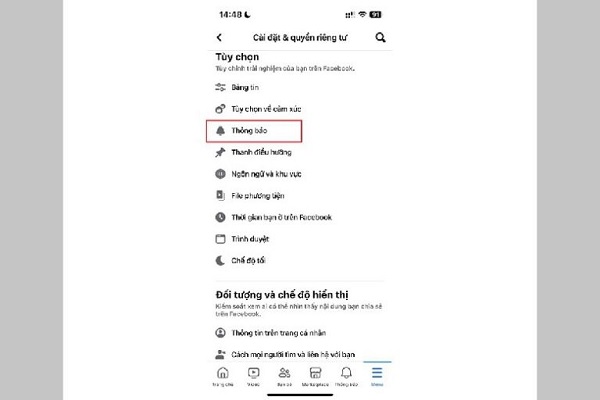 Bước 2: Vào Cài đặt & Quyền riêng tư > Cài đặt > chọn Thông báo.
