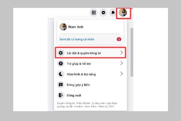 Bước 2: Nhấn vào ảnh đại diện ở góc trên bên phải > chọn Cài đặt & Quyền riêng tư > Cài đặt.