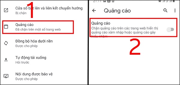 Bước 3: Trong phần Cài đặt trình duyệt, người dùng sẽ thấy xuất hiện một số tùy chọn để tắt chế độ quảng cáo hoặc bật chặn quảng cáo. Những tùy chọn có thể sẽ khác nhau tùy theo trình duyệt mà người dùng đang sử dụng >> Nhấp vào tùy chọn tương ứng để biết được cách tắt quảng cáo trên điện thoại OPPO.