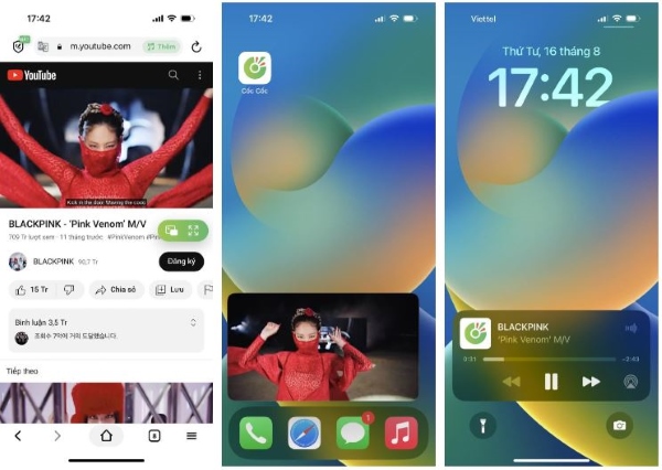 Video sau đó sẽ được ghim ở cửa sổ thu nhỏ tại góc màn hình và không mất đi khi bạn đóng trình duyệt Cốc Cốc. Bạn chỉ cần tắt màn hình và thoải mái nghe nhạc dưới nền.