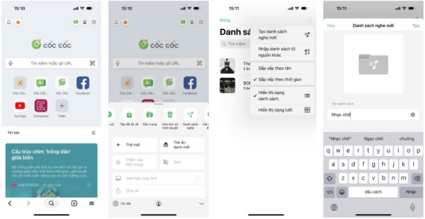 Tạo danh sách nghe mới trên trình duyệt Cốc Cốc