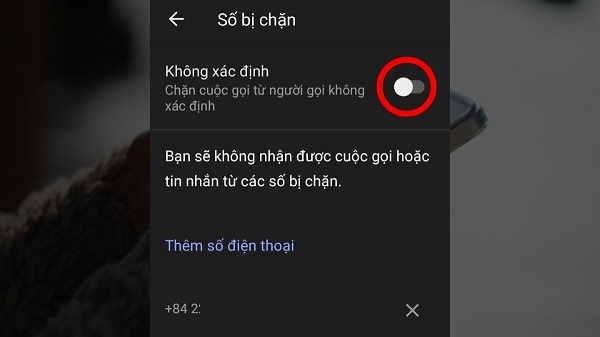 Bước 3: Để bật tính năng chặn tất cả các cuộc gọi, người dùng tìm mục Không xác định và bật tính năng này lên. Lúc này, những số lạ sẽ không thể thực hiện được các cuộc gọi cho bạn.