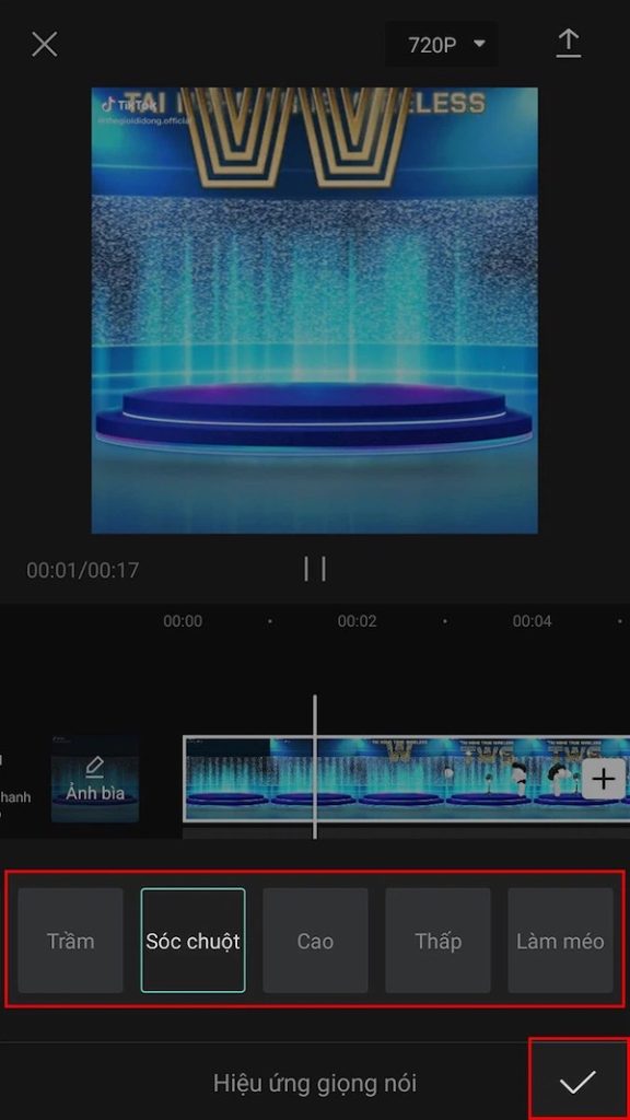 Bước 5: Sau khi chọn hiệu ứng giọng nói phù hợp, bạn có thể thao tác thêm các hiệu ứng chỉnh sửa khác cho hoàn thiện.