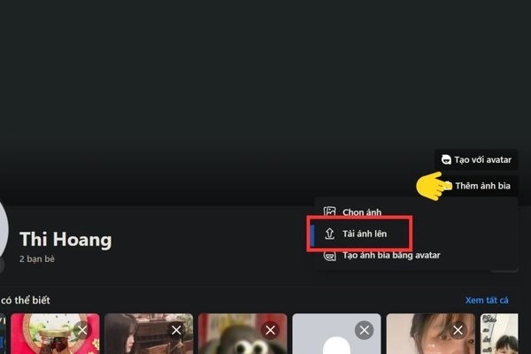 Bước 1: Bạn mở vào trang cá nhân của mình, chọn Thêm ảnh bìa rồi chọn ảnh mà mình thích và tải lên.
