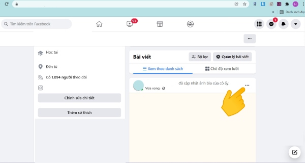 Bước 3: Tiếp theo, bạn vào bài đăng thông báo cập nhật ảnh bìa của mình và chọn vào biểu tượng dấu ba chấm.