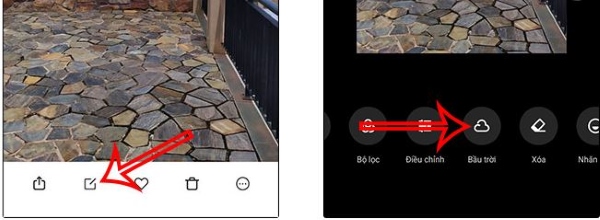 Bước 1: Trước tiên, bạn mở thư viện ảnh trên điện thoại Xiaomi > nhấn chọn vào ảnh ban ngày muốn chỉnh sửa > nhấn vào biểu tượng chỉnh sửa phía dưới > nhấn vào mục Bầu trời để tiến hành chỉnh bầu trời trong ảnh.