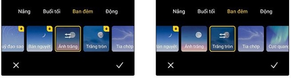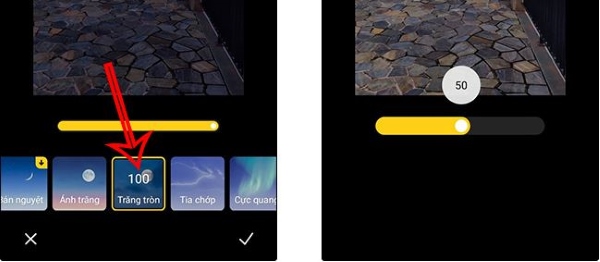 Bước 4: Khi nhấn vào biểu tượng điều chỉnh 2 dấu gạch ngang, người dùng có thêm lựa chọn chỉnh mức độ hiệu ứng cảnh ban đêm muốn sử dụng. Bạn điều chỉnh tới hiệu ứng cảnh đêm mà mình ưng ý với từng thang điểm khác nhau.
