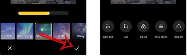 Bước 5: Bạn nhấn vào dấu v ở góc dưới cùng bên phải để lưu lại hiệu ứng mong muốn. Cuối cùng bạn nhấn Lưu lại ảnh đêm mới trên điện thoại. Ảnh mới được chỉnh sửa sẽ lưu tách biệt và không làm mất ảnh gốc của bạn.