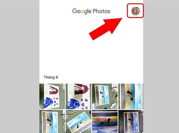 Bước 1: Mở Google Photos/ Chọn icon ảnh đại diện ở góc bên phải của màn hình.