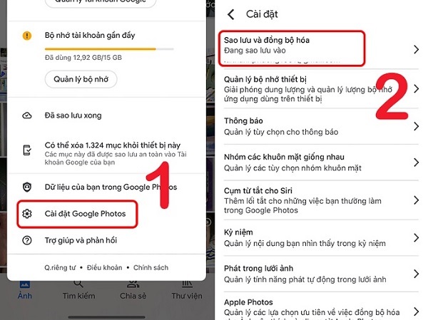 Bước 2: Tại bước này bạn chọn Cài đặt Google Photos/ Sao lưu và đồng bộ hóa.