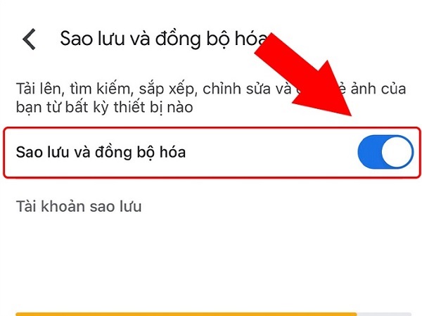 Bước 3: Bạn vuốt sang bên phải để bật tính năng Sao lưu và đồng bộ hóa.
